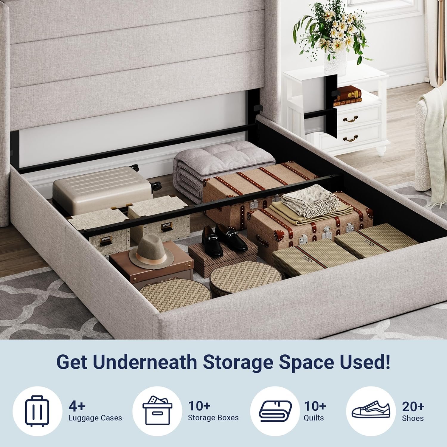 Who Should Buy Allewie Queen Size Lift Up Storage Bed, Modern Wingback Headboard, Hydraulic Support, No Box Spring Needed, Light Beige?