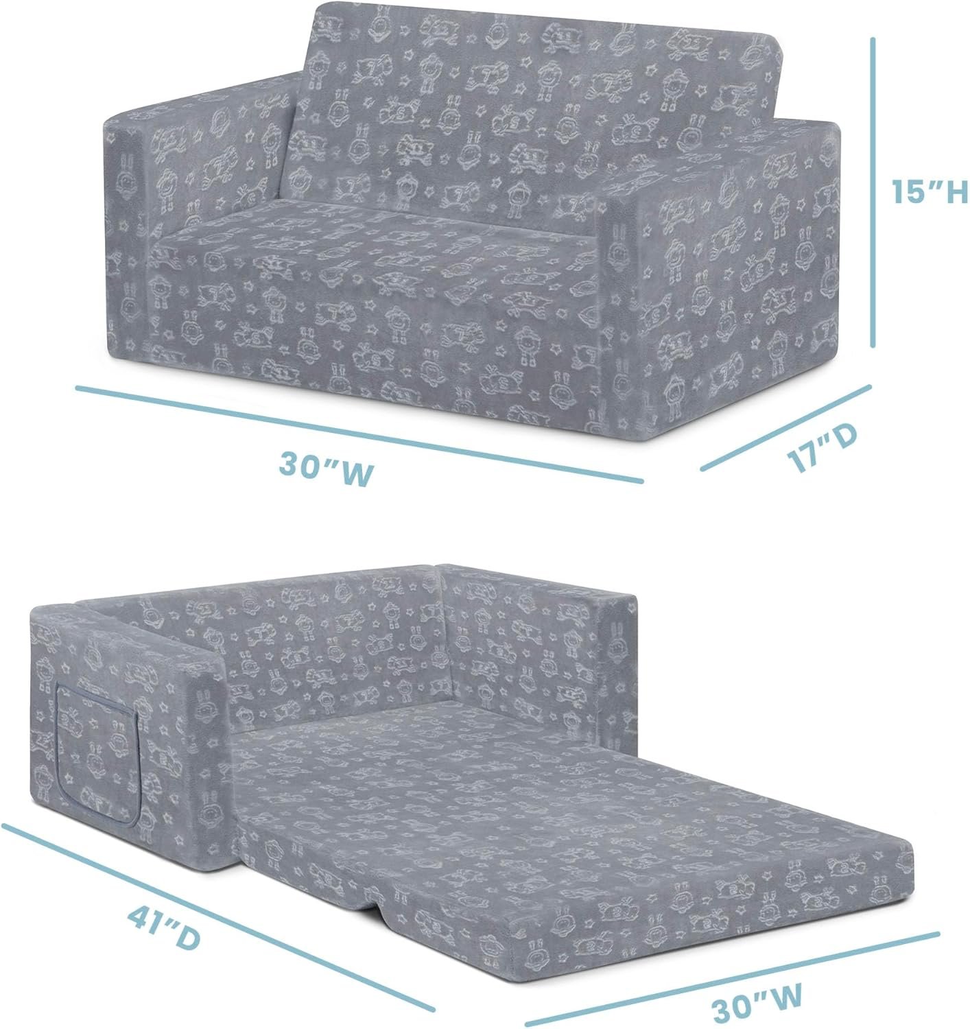 Absolutely. My two toddlers, ages 2 and 4, sit on it side-by-side with room to spare. When flipped open into its floor lounger mode, they can both lie on it comfortably. It’s one of the main reasons this has become our go-to for a kids bedroom or playroom. Having a home that works for both kids and pets can be a challenge, which is why creating a pet-ready living guide for your space is a great idea.