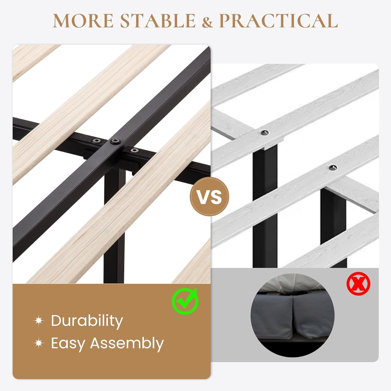 - No Box Spring Needed: Thanks to sturdy wood slats, this full size platform bed supports mattresses 8″–12″ thick directly—simplifying setup and saving you extra costs. This design is both practical for everyday use and extends the mattress’s life.